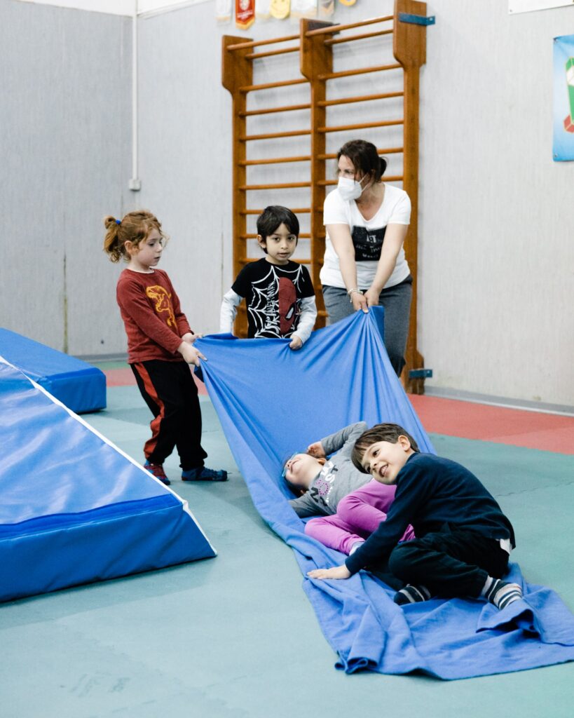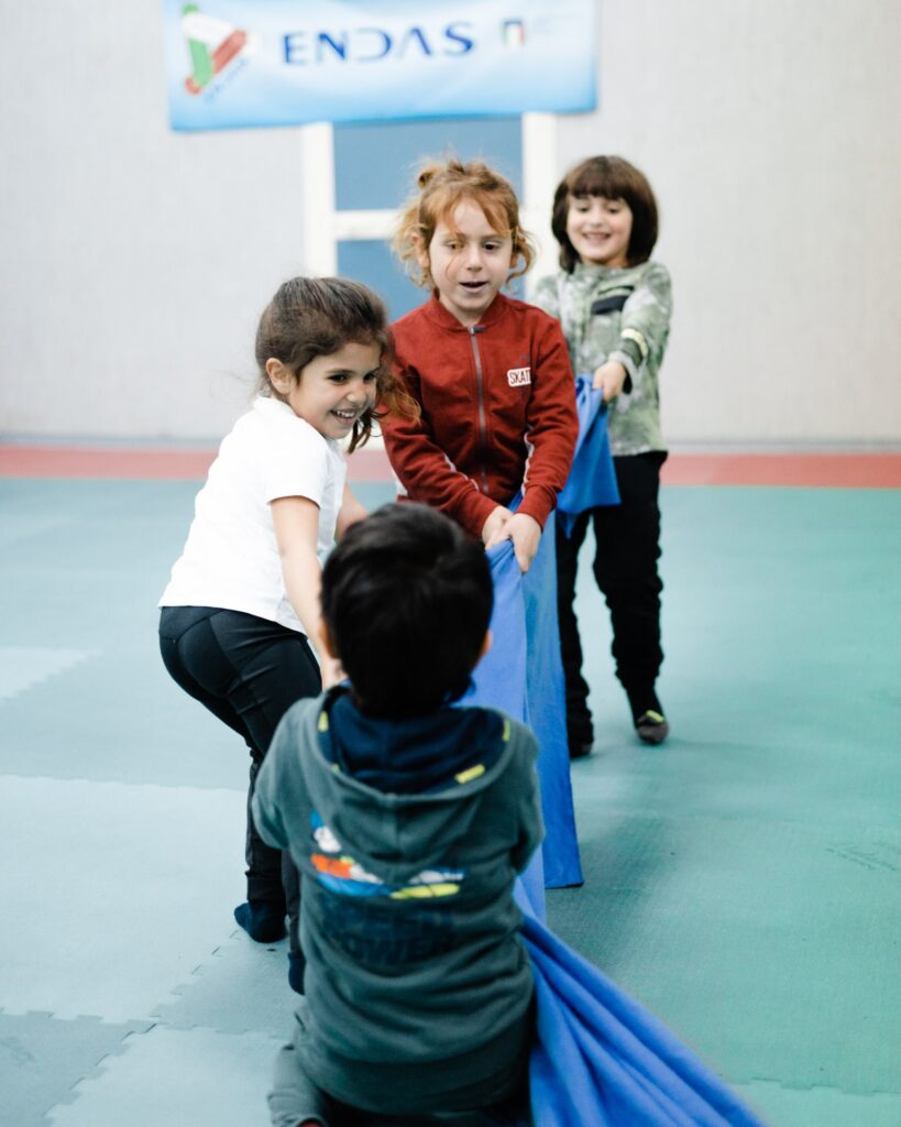 Non sono i bambini a dover aderire ad attività uguali per tutti, ma gli spazi (attrezzi, distanze, movimenti) e i tempi vengono modellati in base all’età, alle condizioni e alle abilità individuali. Questo garantisce che nessun bambino si trovi nella condizione di non saper fare qualcosa, poiché le attività sono declinate in base al suo livello di competenza.